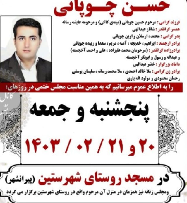 تصویر زیر آگهی ترحیم حسن چوپانی است: