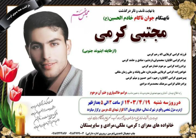 تصویر زیر آگهی ترحیم مجتبی کرمی است: