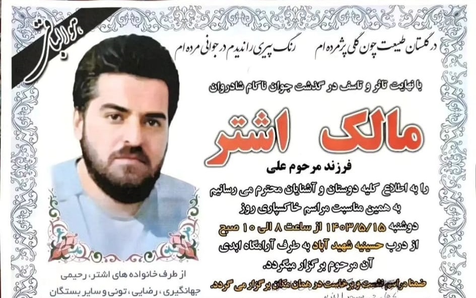تصویر زیر آگهی ترحیم مالک اشتر است: