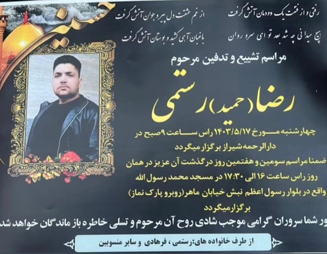 تصویر زیر آگهی ترحیم رضا (حمید) رستمی است:
