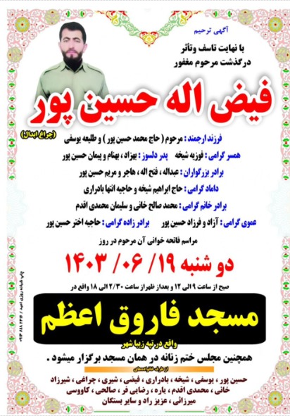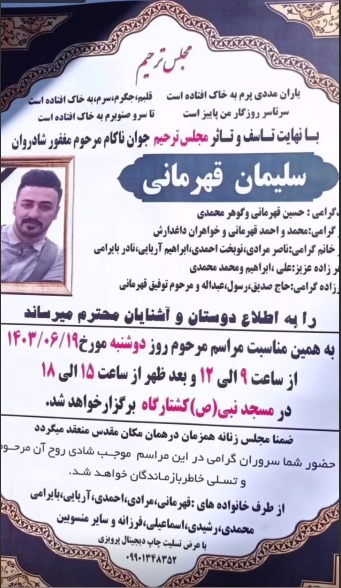 تصویر زیر آگهی ترحیم سلیمان قهرمانی است: