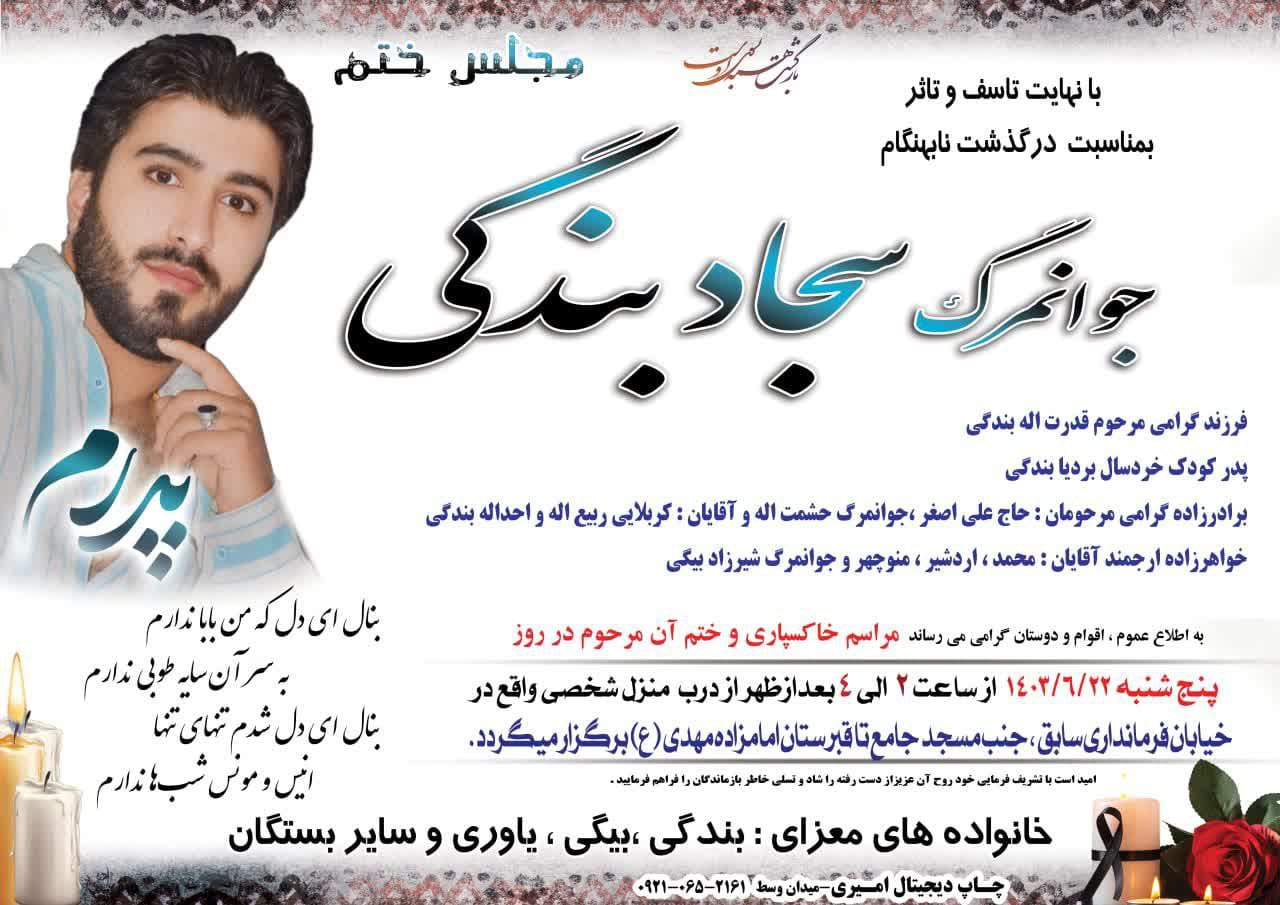تصویر زیر آگهی ترحیم سجاد بندگی است: