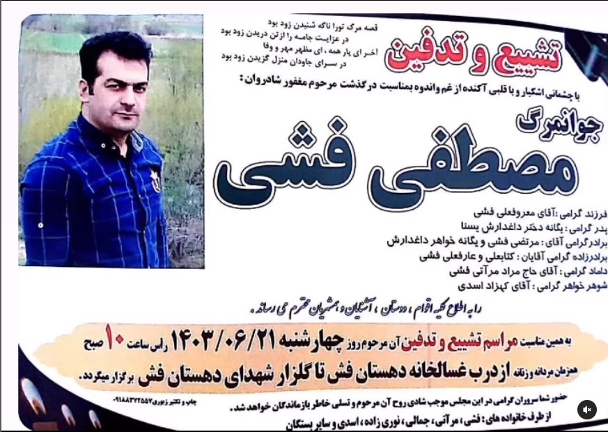 تصویر زیر آگهی ترحیم مصطفی فشی است:
