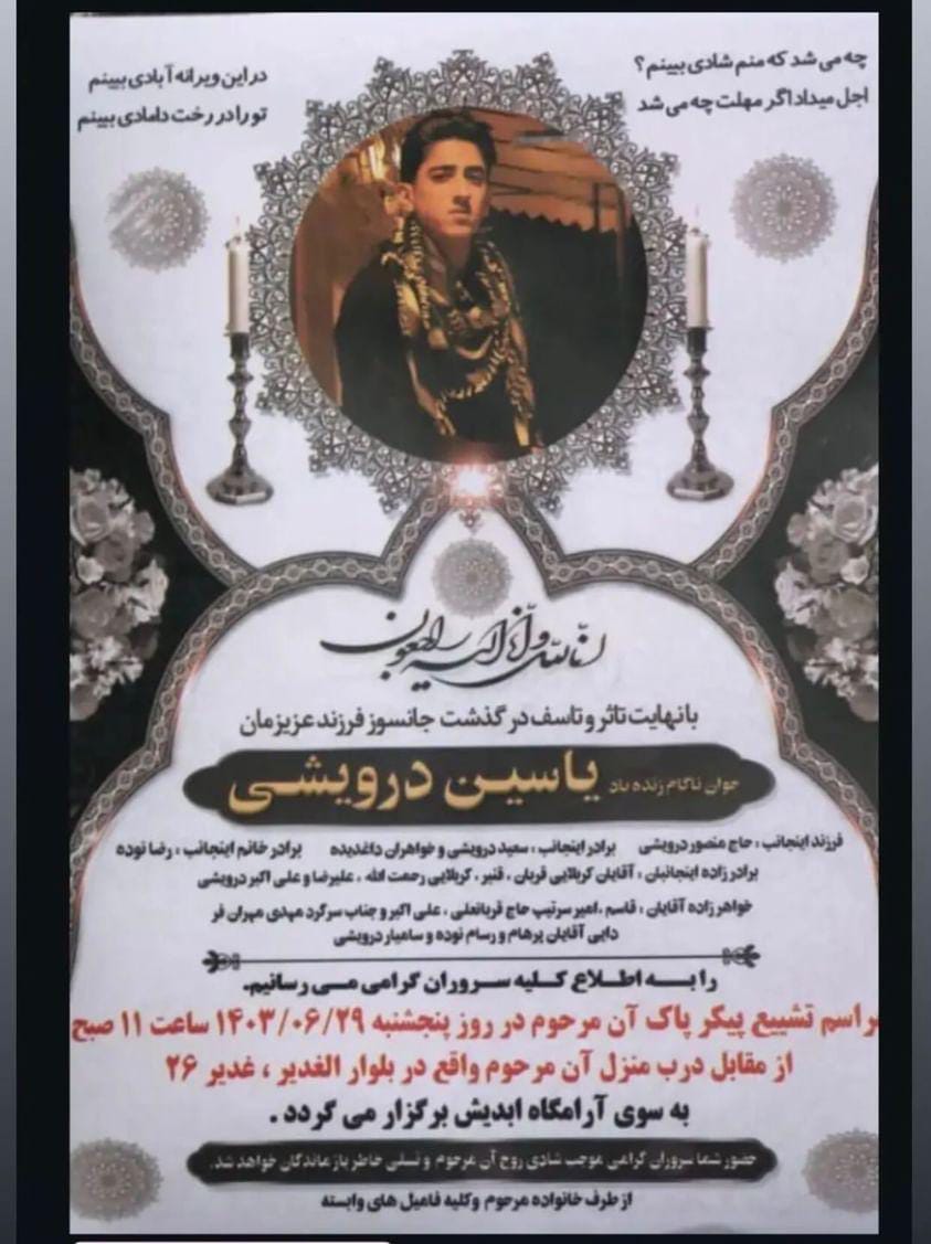 تصویر زیر آگهی ترحیم یاسین درویشی است: