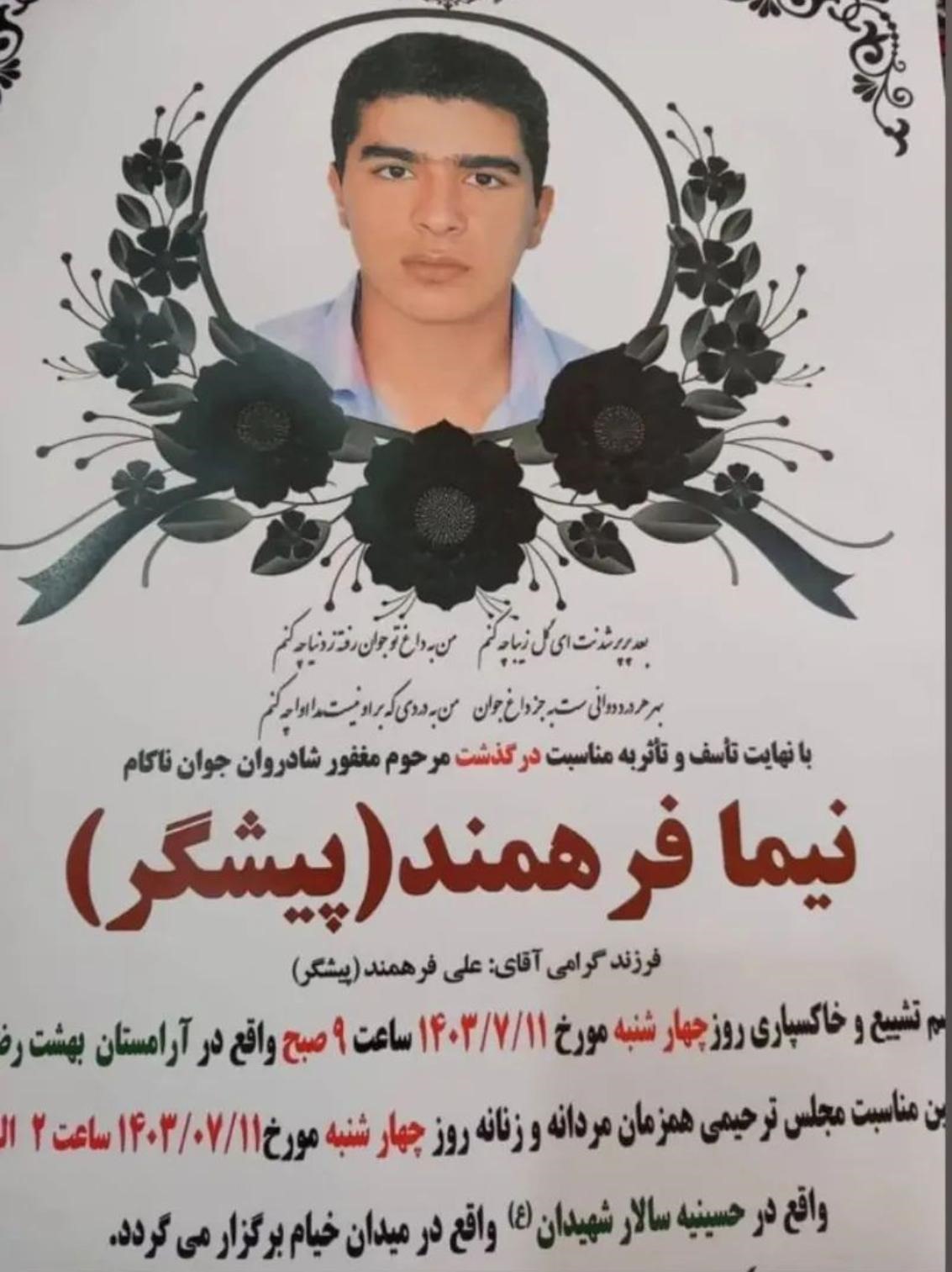 تصویر زیر آگهی ترحیم نیما فرهمند (پیشگر) است: