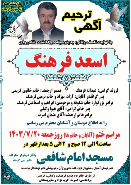 تصویر زیر آگهی ترحیم اسعد فرهنگ است: