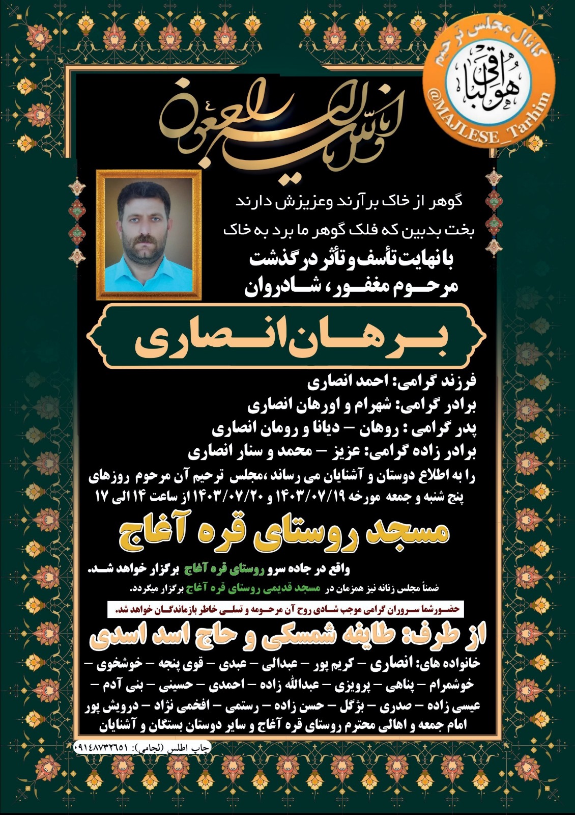 تصویر زیر آگهی ترحیم برهان انصاری است: