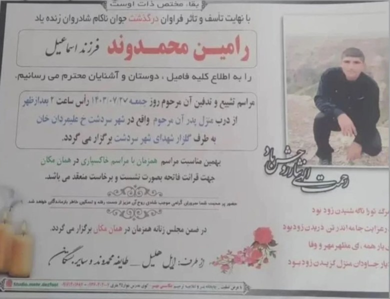 تصویر زیر آگهی ترحیم رامین محمدوند است: