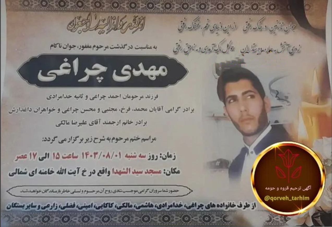 تصویر زیر آگهی ترحیم مهدی چراغی است:
