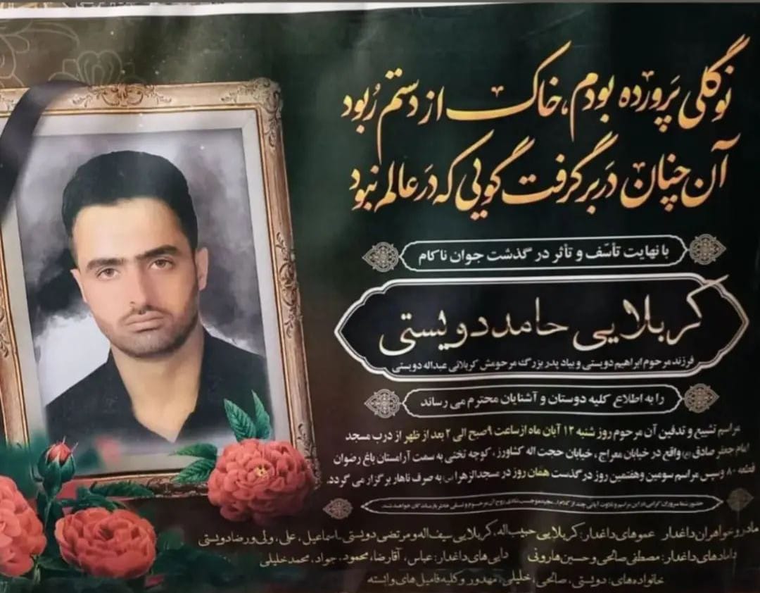 تصویر زیر آگهی ترحیم حامد دویستی است: