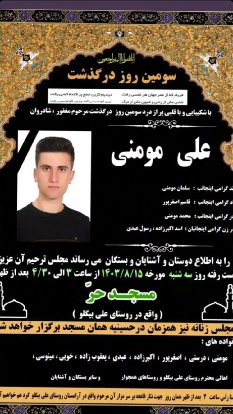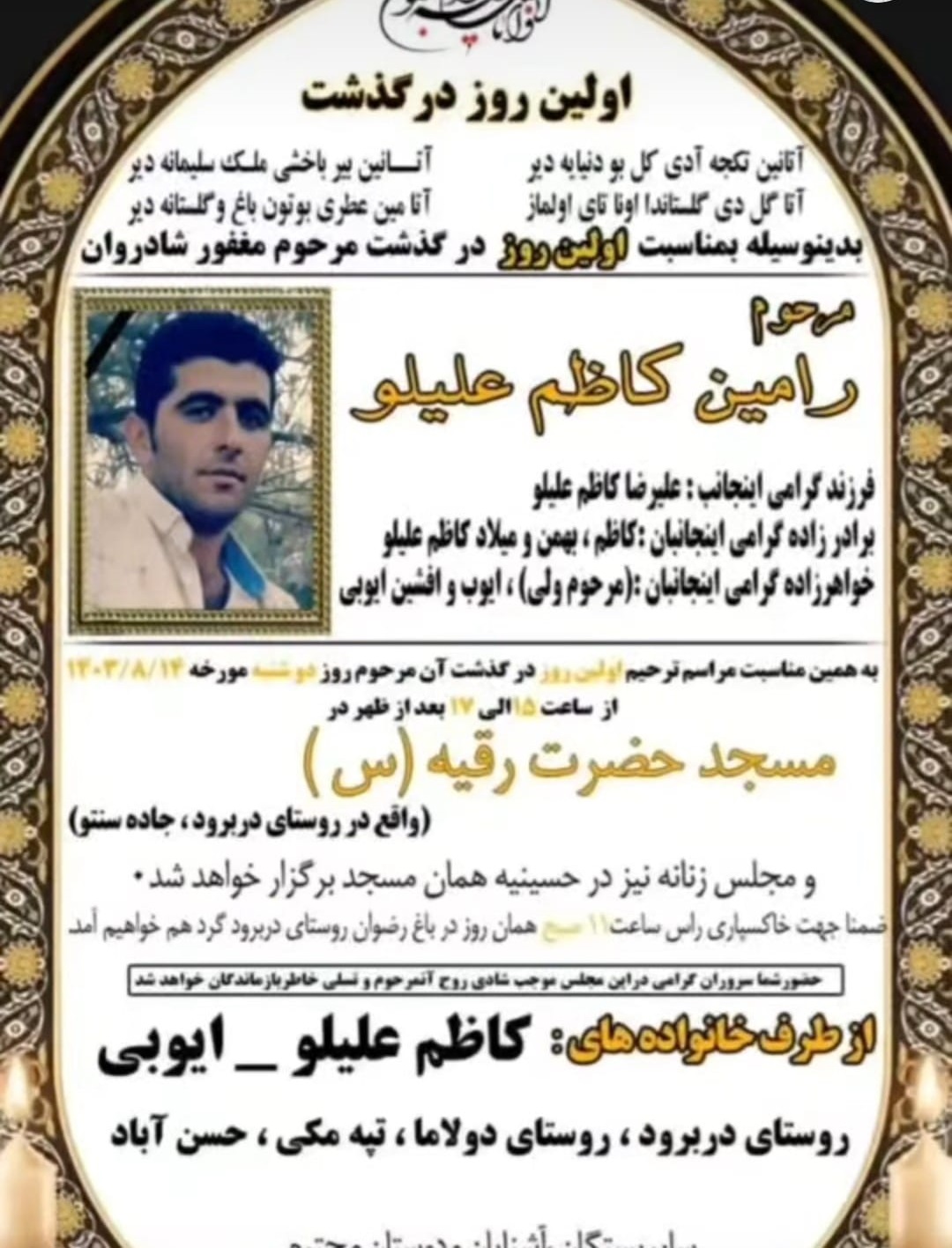 نصویر زیر آگهی ترحیم رامین کاظمعلیلو است:
