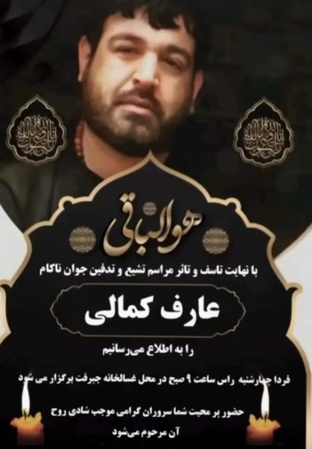 تصویر زیر آگهی ترحیم عارف کمالی است: