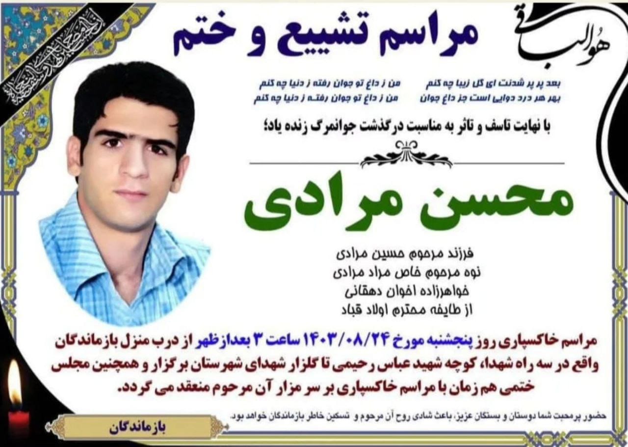 تصویر زیر آگهی ترحیم محسن مرادی است: