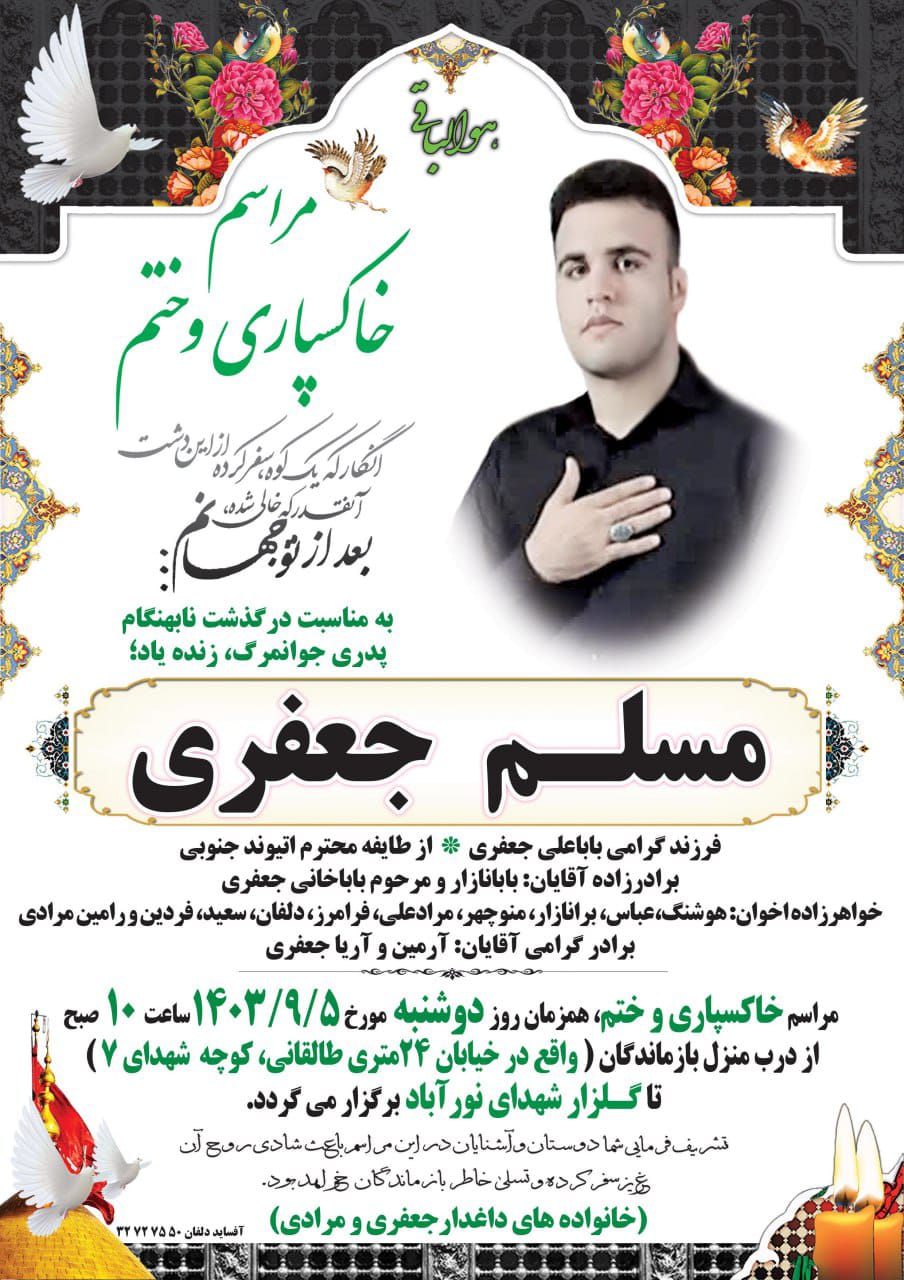 تصویر زیر آگهی ترحیم مسلم جعفری است: