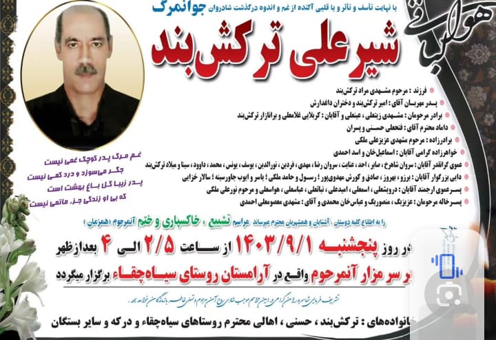 تصویر زیر آگهی ترحیم شیرعلی ترکشبند است: