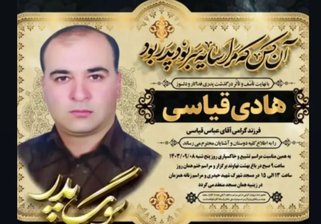 تصویر زیر آگهی ترحیم هادی قیاسی است: