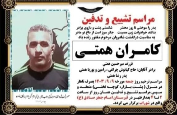 تصویر زیر آگهی ترحیم کامران همتی است: