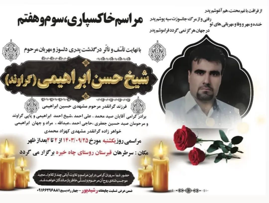 تصویر زیر آگهی ترحیم حسن ابراهیمی (گراوند) است: