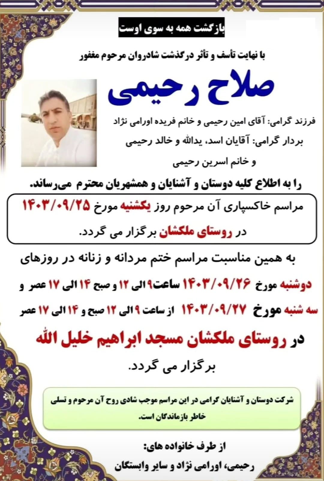 تصویر زیر آگهی ترحیم صلاح رحیمی است:
