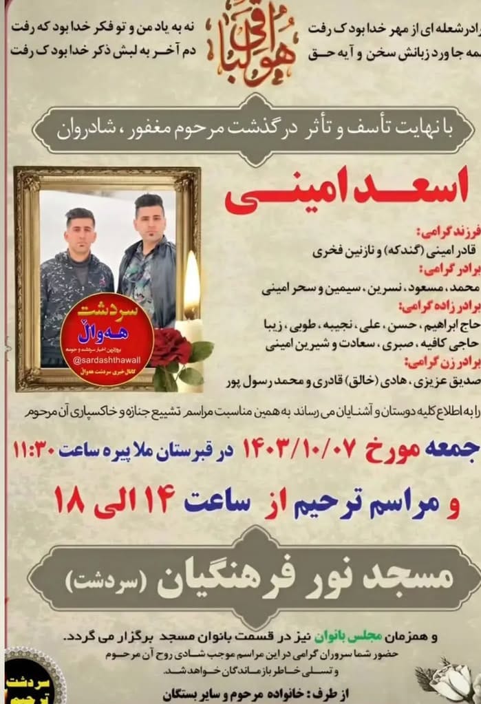 تصویر زیر آگهی ترحیم اسعد رحیمی است:
