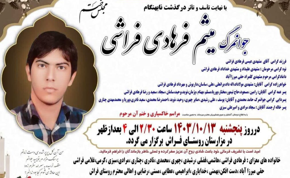 تصویر زیر آگهی ترحیم میثم فرهادی‌فراشی است: