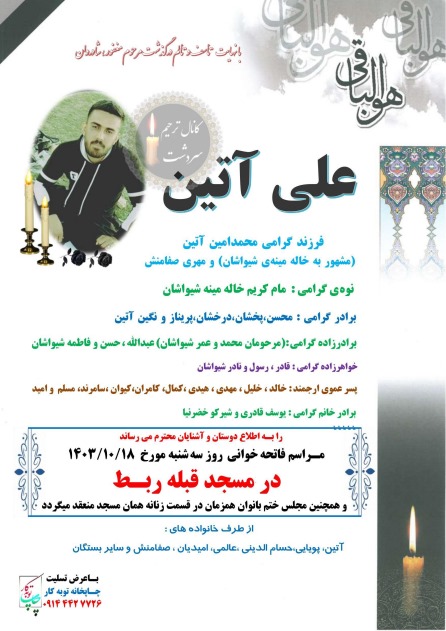 تصویر زیر آگهی ترحیم علی آتین است: