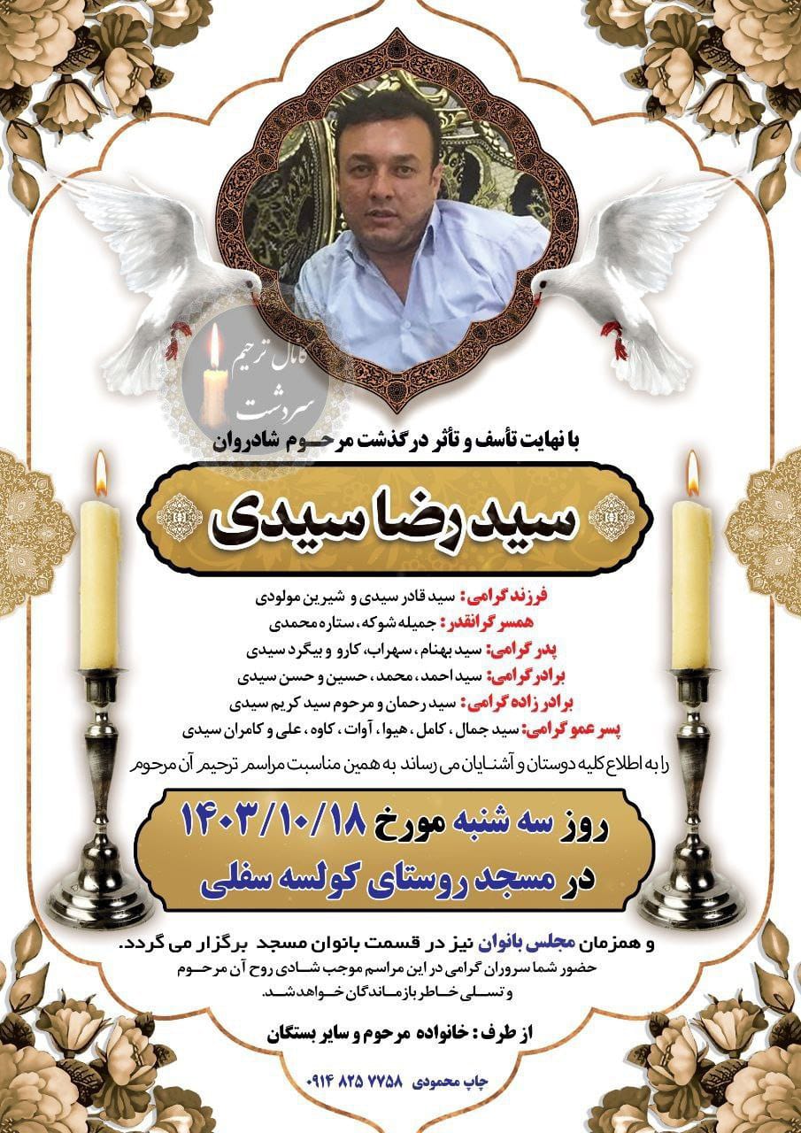 تصویر زیر آگهی ترحیم رضا سیدی است: