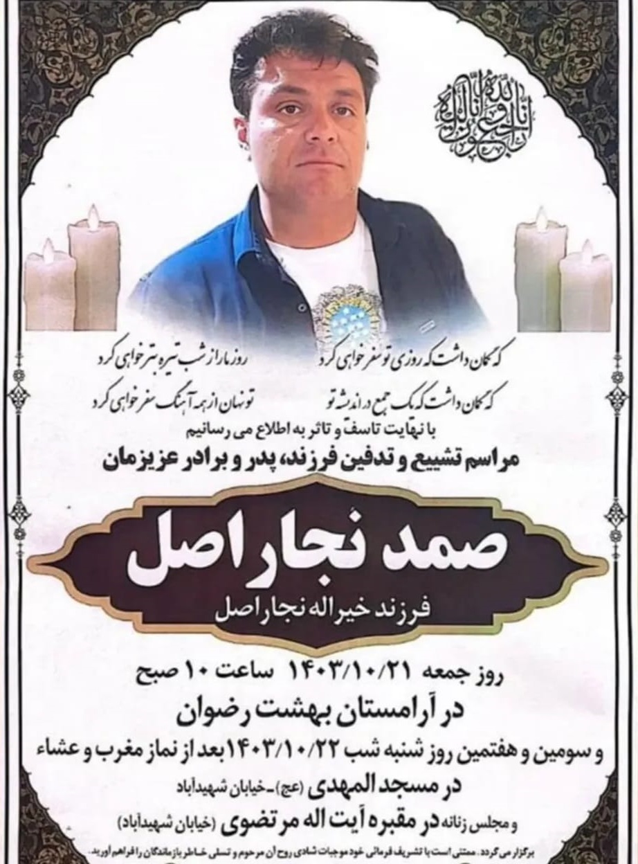 تصویر زیر آگهی ترحیم صمد نجاراصل است: