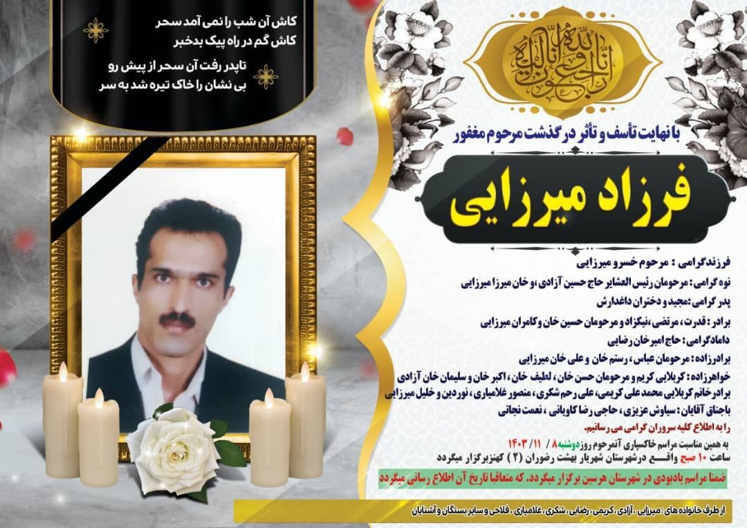 تصویر زیر آگهی ترحیم فرزاد میرزایی است: