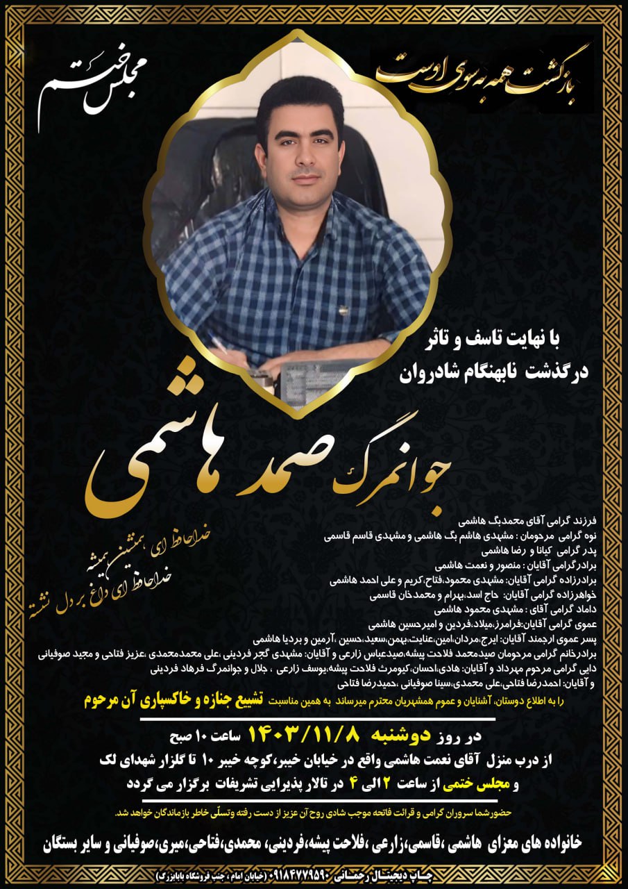 تصویر زیر آگهی ترحیم صمد هاشمی است: