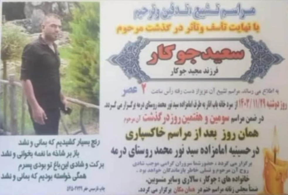 تصویر زیر آگهی ترحیم سعید جوکار است: