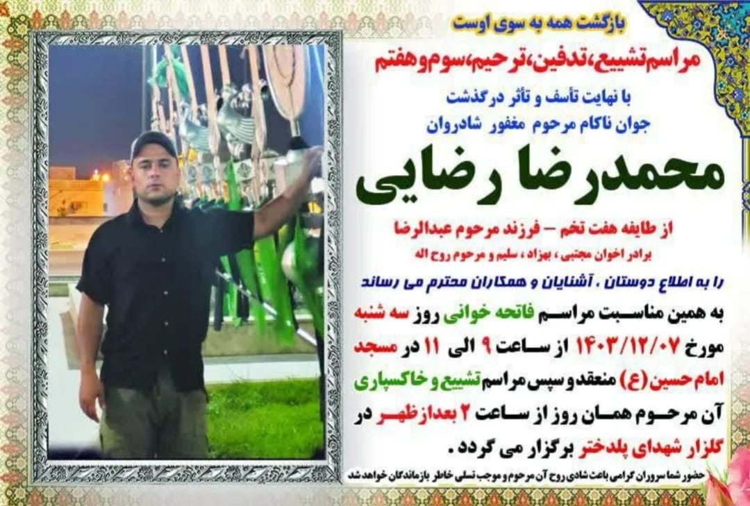تصویر زیر آگهی ترحیم محمدرضا رضایی است: