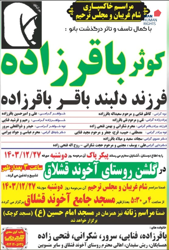 تصویر زیر آگهی ترحیم کوثر باقرزاده است: