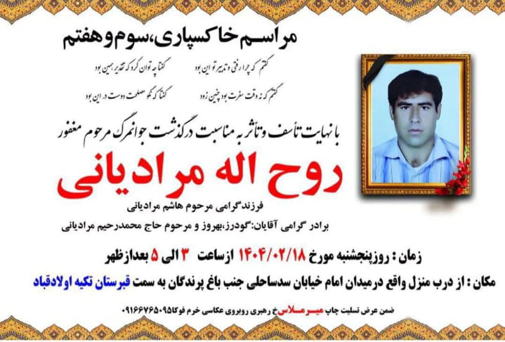 تصویر زیر آگهی ترحیم روح‌اله مرادیانی است: