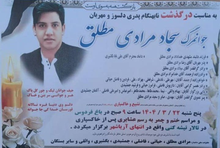 تصویر زیر آگهی ترحیم سجاد مرادی‌مطلق است: