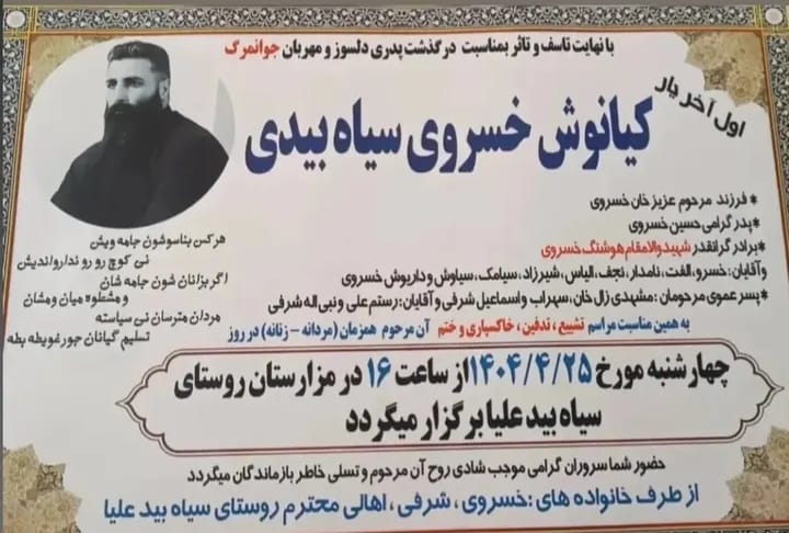 تصویر زیر آگهی ترحیم کیانوش خسروی‌سیاه‌بیدی است: