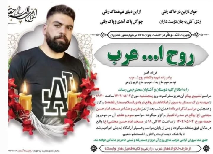تصویر زیر آگهی ترحیم روح‌الله عرب است: