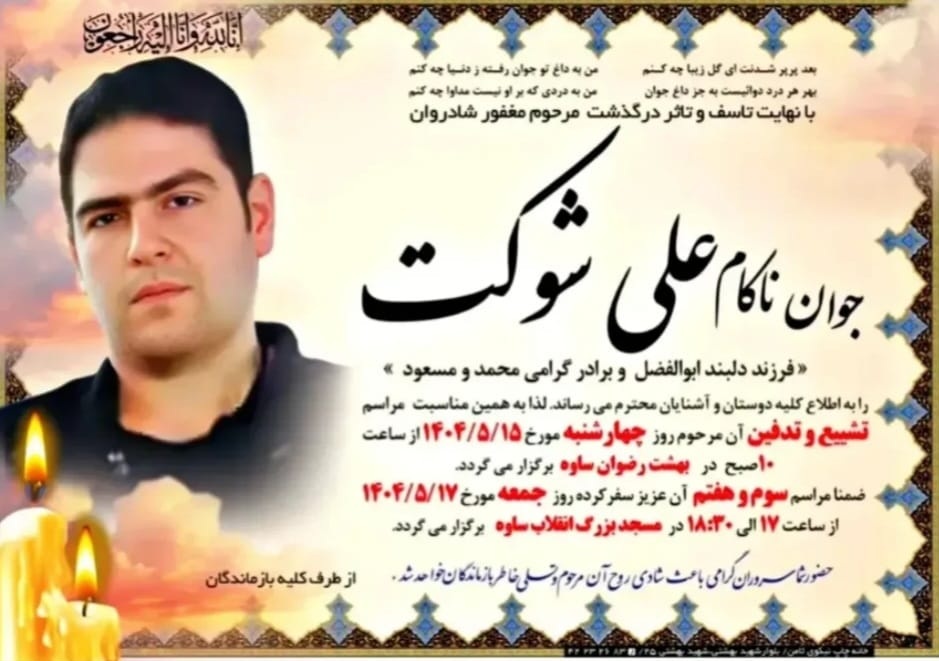 تصویر زیر آگهی ترحیم علی شوکت است: