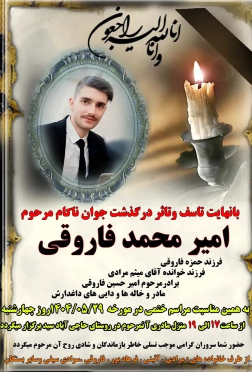 تصویر زیر آگهی ترحیم امیرمحمد فاروقی است: