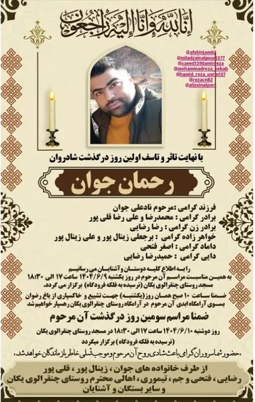 تصویر زیر آگهی ترحیم رحمان جوان است: