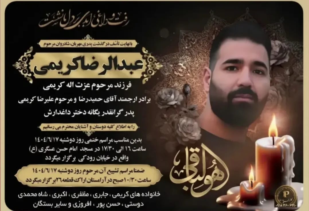 تصویر زیر آگهی ترحیم عبدالرضا کریمی است: