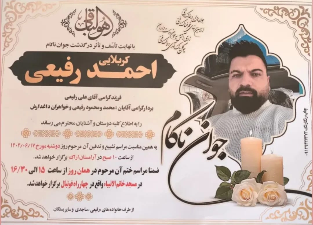 تصویر زیر آگهی ترحیم احمد رفیعی است: