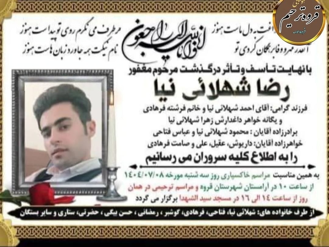 تصویر زیر آگهی ترحیم رضا شهلائی‌نیا است:
