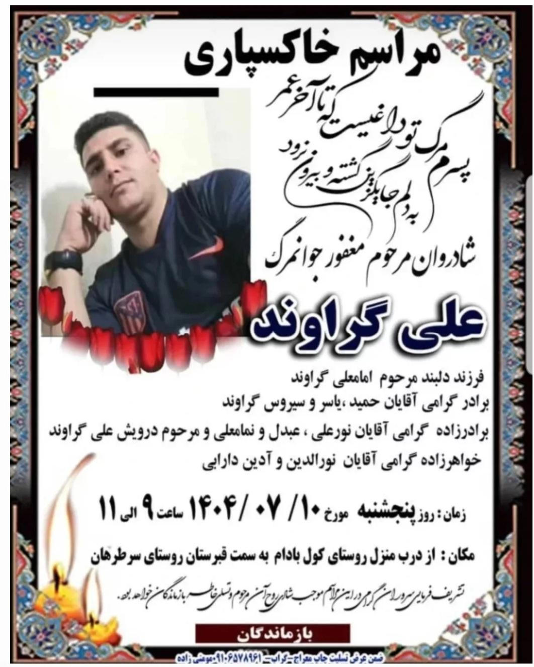 تصویر زیر آگهی ترحیم علی گراوند است: