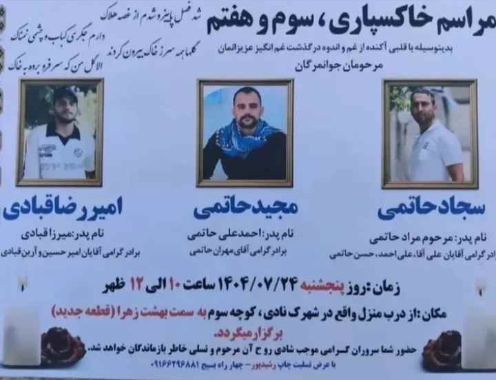 تصویر زیر آگهی ترحیم امیررضا قبادی، مجید حاتمی و سجاد حاتمی است:
