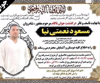سازمان حقوق بشر ایران؛ ۲۵ مهر ماه ۱۴۰۴: حکم اعدام دو زندانی از جمله یک شهروند بلوچ بهنامهای محمدرفیق گلهبچه و مسعود نعمتی که با اتهامات مربوط به «مواد مخدر» به اعدام محکوم شده بودند، در زندان مرکزی اراک، بدون اطلاع خانوادهها و بدون حضور وکیل مدافع، به اجرا درآمد.