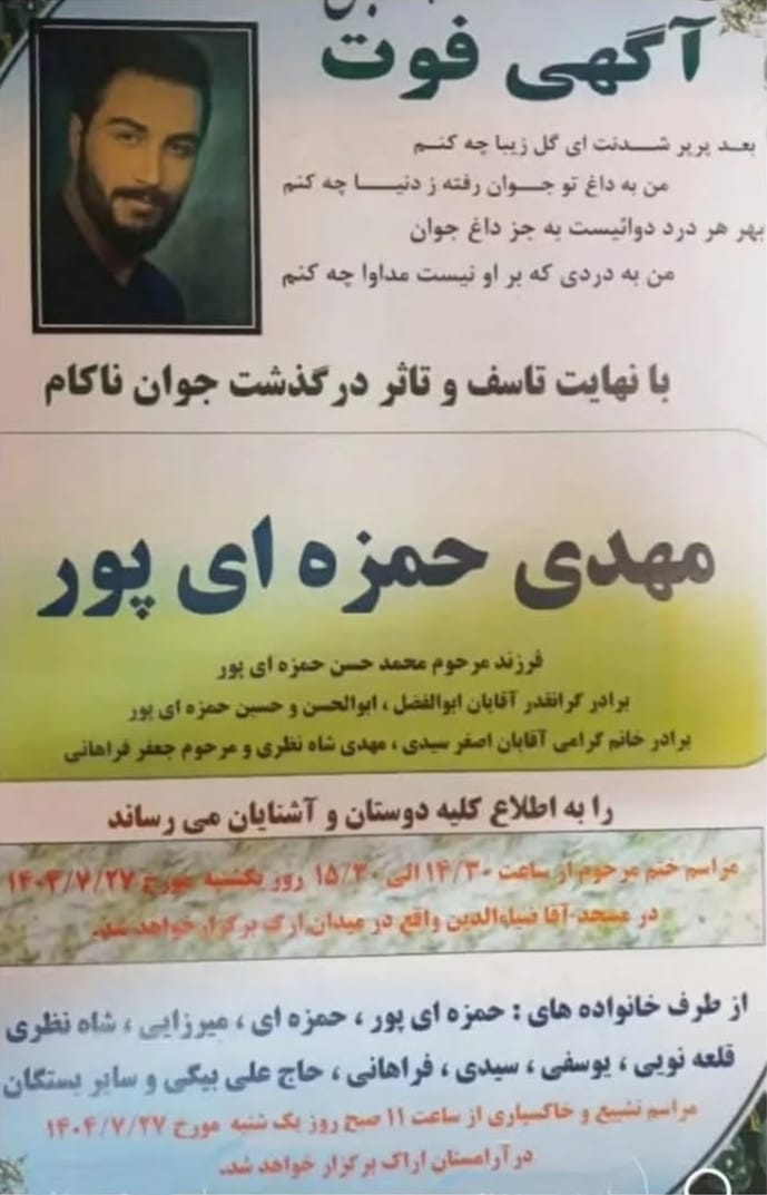 تصویرزیر آگهی ترحیم مهدی حمزه‌ای‌پور است: