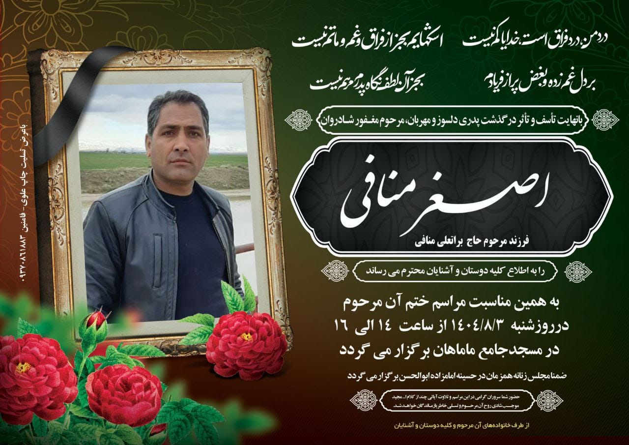 تصویر زیر آگهی ترحیم اصغر منافی است: