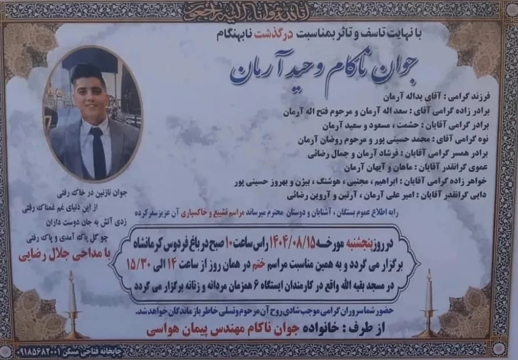 تصویر زیر آگهی ترحیم وحید آرمان است: