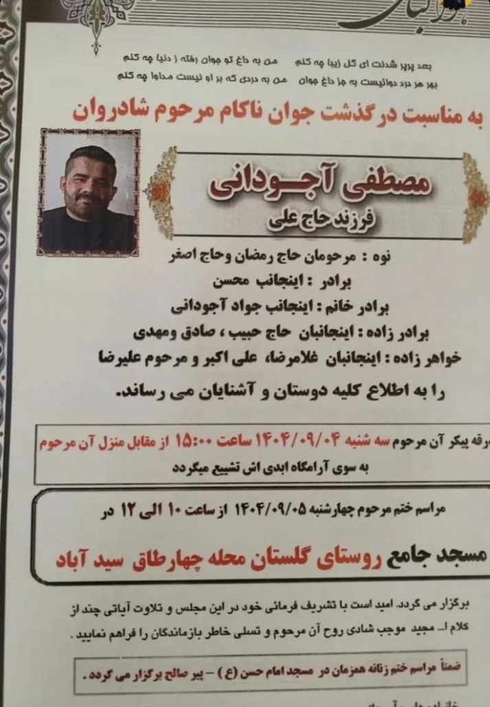 تصویر زیر آگهی ترحیم مصطفی آجودانی است: